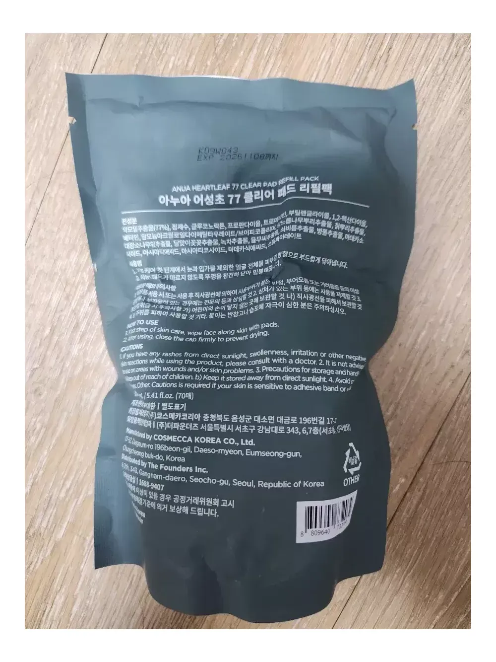 아누아 어성초77 클리어 패드 리필팩 새상품 반값택배비 포함