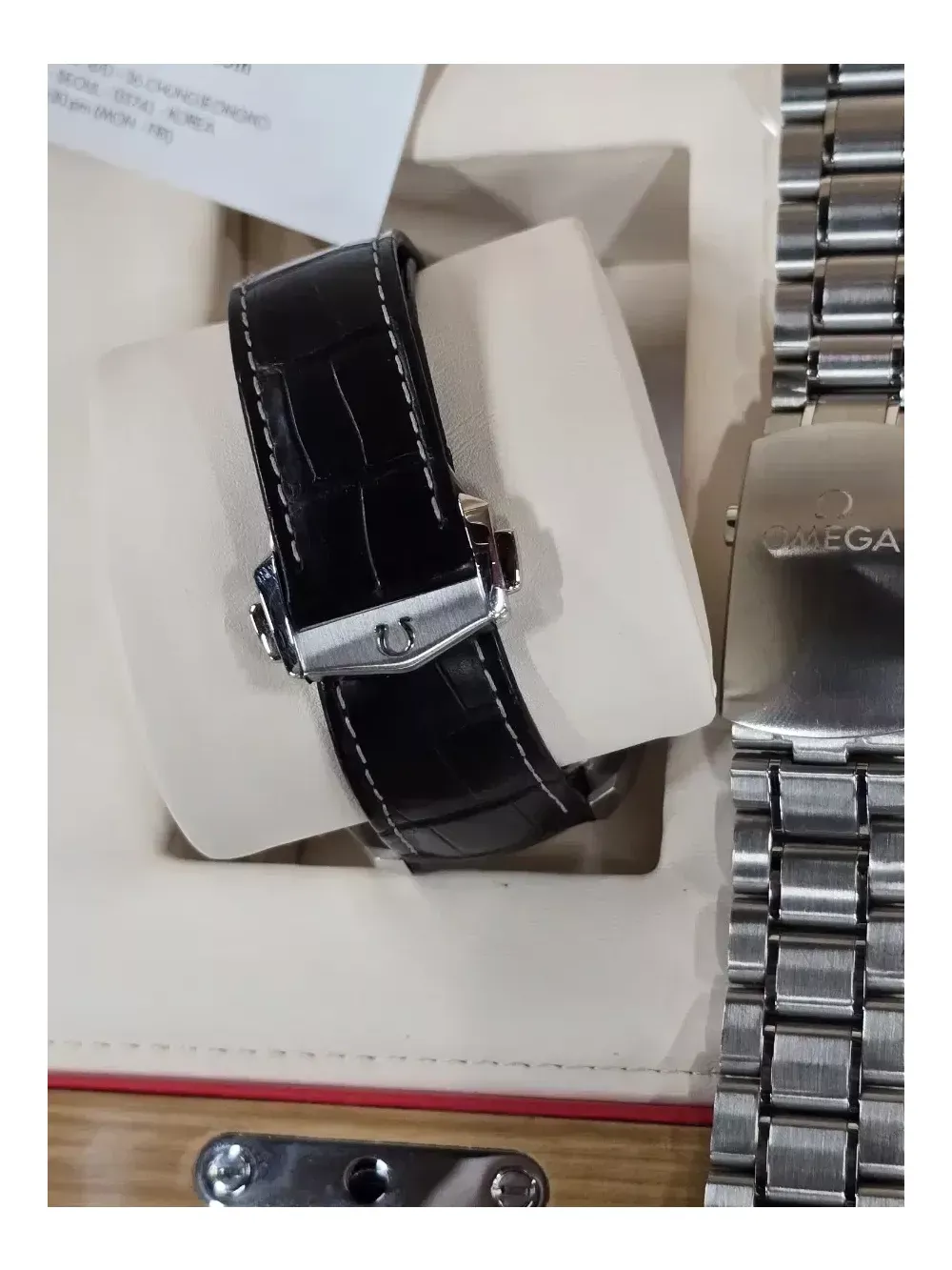 22년5월 국내백화점 스템핑 박스풀셋입니다 리테일가1670 브레이슬릿본품+100만원상당 악어가죽스트랩디버클 포함입니다 보증기간 27년5월로 아직 3년가까이 남아있습니다 풀코에 박스풀셋이며 브레이슬릿은 거의새거라고보시면됩니다 브레이슬릿도 줄조정기능이 신씨마랑동일합니다 오메가의 기함급 모델답게 세라믹베젤.리퀴드메탈 나사에서직접촬영한달모양까지 기능도많고 신경도 많이쓴 오메가의 기함모델입니다 서울 직거래 가능합니다 교환은+추가금받는쪽으로만가능합니다 드리는건불가능합니다 판매가격 일괄 870입니다 네고는 불가합니다