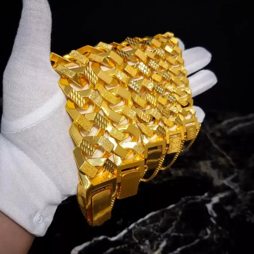 ※타 업체에서 구매하시더라도 제품 소재가 어떤것인지 꼭 문의 후 구매하세요. (금.순은 이 아닐경우 알레르기가 발생합니다) ⬆️위 5번~12번 사진은 A.C.C 구매 고객님들의 100% 실제 후기 사진입니다⬆️ ■제품명: 팔각체인 5종 ■소재: 법정순은92.5+순금도금 ■팔찌 폭 크기 12.5mm▶️ 24k 20돈 크기 15mm ▶️ 24k 25돈 크기 17mm ▶️ 24k 35돈 크기 21mm ▶️ 24k 50돈 크기 25mm ▶️ 24k 70돈 크기 29mm ▶️ 24k 100돈크기 33mm ▶️ 24k 100돈이상 크기 ⛔상세내용 더보기 필수⛔ 저희만의 차별점을 "꼭" 확인해주세요. ●번개장터 판매 경력12년, 1000개이상의 후기와 평점이 말해주는 "만족감과 신뢰" ●법정 순은으로 "1:1맞춤 핸드메이드"제작 ●평생 A/S 가능 ●대용금이 아닌 "진짜 금"으로 도금 ●타 업체처럼 말만 두꺼운 도금이 아닌 진짜 두꺼운 "두께도금" ●진짜 금처럼 체인 사이사이 마감까지 "완벽한 퀄리티" ●타 업체대비 "진짜 금처럼 묵직한 무게감" (크기만 크다고 좋은게 아닙니다.) ●합리적인 가격 ●신주.써지컬같은 패션악세사리는 소리부터 다른 쇳덩이일뿐 ●금과 은이 알러지반응 가장적습니다 (신주.써지컬은 알러지가 생기기 쉽습니다) ●신주.써지컬과는 달리 "재산"으로서의 가치있는 상품(신주.써지컬은 구매하는순간 사라지는 돈) ●은/도금/14K/18K/24K/백금/순금 "원하시는대로 제작가능" ⬇️⬇️⬇️⬇️⬇️⬇️⬇️⬇️ ?타업체와 다른 차별점? ***저희는 이윤이 아닌 "고객님의 만족"을 추구합니다. ***최대규모 귀금속단지인 종로에서 20년이상의 세공경력을 바탕으로 1:1맞춤제작후 국내 3손가락 안에 꼽히며 다수의 명품브랜드와 협업중인 40년 경력의 귀금속 도금전문 기업에서 도금을 진행합니다. ***저희는 법정순은 소재로 제작한 제품에 24K 순금 으로 도금을 입힙니다. (진짜 금으로 도금합니다 싸구려 대용금이 아닙니다) ●귀금속 24k 순금 도금 (공장가 기준) 3미크론: 30,000원 5미크론: 50,000원 ***써지컬.신주는 은으로 제작한 상품과 달리 찰랑찰랑 가벼운 소리가 나며, 소재의 특성상 진짜 금처럼 묵직한 무게감을 구현할수 없고 구매후의 값어치가 없는 그냥 쇳덩이일뿐인 패션악세사리입니다. ***써지컬,신주는 10~20만원에 구매하는 순간 사라지는 돈입니다. 은으로 제작한 상품이 비싼 이유는 소재로 인한 금액 차이만 있을뿐이며, 소재의 금액을 뺀 세공비,도금비는 차이가 없습니다. 한번의 구매로 평생 사용하실수 있는 상품을 구매하시기 바랍니다. ***타 업체와 팔찌 폭(예 21mm) 이 같더라도 꼭 은 중량을 확인하세요. 저희는 진짜 순금 팔찌의 디자인과 무게감까지 생각하여, 타 업체 대비 최소5돈 이상의 중량을 더 추가해 세공합니다. 낮은 중량으로 팔찌 폭만 키울 경우 할로우 (속이비어있는체인) 이거나 체인 링크마다의 간격이 벌어져있어 굴빵함과 착용시 묵직함이 다릅니다. ***귀금속 소재인 금.은을 제외한 악세사리 소재 신주.써지컬.브라스.텅스텐 등은 그 소재자체로 알러지 반응을 유발하는 경우가 많은 싸구려 악세사리 일 뿐더러 마진을 위해 대용금(금을 대신하여 색만내는 합금) 으로 도금을 입힌다고 확신합니다. 대용금을 이용한 도금은 그 자체만으로도 알러지를 유발할수 있고 특히 써지컬은 피어싱용 저품질 도금인 이온도금만 가능합니다. ***착용후 질릴경우 언제든 금은방에 순은으로 판매 가능한 재산으로 분류되는 귀금속입니다. ⬇️⬇️⬇️⬇️⬇️⬇️⬇️⬇️ °세공 국내 최대 귀금속 단지인 종로에서 20년 이상의 순금세공 경력을 바탕으로 고객님들이 꼭 고가의 순금제품이 아니더라도 순금이상의 만족감을 느끼실수 있도록 수많은 시행착오 끝에 보다 쉽고 부담없는 가격에 착용하시면서 최상의 착용감, 만족감을 경험해보시기 바랍니다. °도금 1979년 설립 후 40년간 귀금속 도금만 전문으로 하며 국내 3손가락 안에 꼽히는 최대규모의 귀금속 전문 도금기업에서 도금 작업을 진행 합니다.