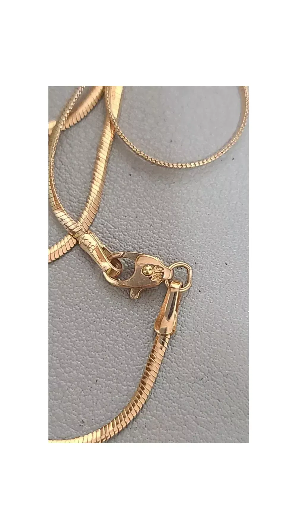 18k핑크골드 뱀줄목걸이에요 4ㆍ00g 1ㆍ066 돈 길이42센치 줄폭 1미리 항상ㆍ꾸준히 인기 있는 뱀줄목걸이 에요 데일리로도 좋아요 18k 아닐시만 반품됩니다 교환ㆍ에눌 ×××× 초음파 세척완료 매너거래ㆍ신중구매바랍니다 공지필독