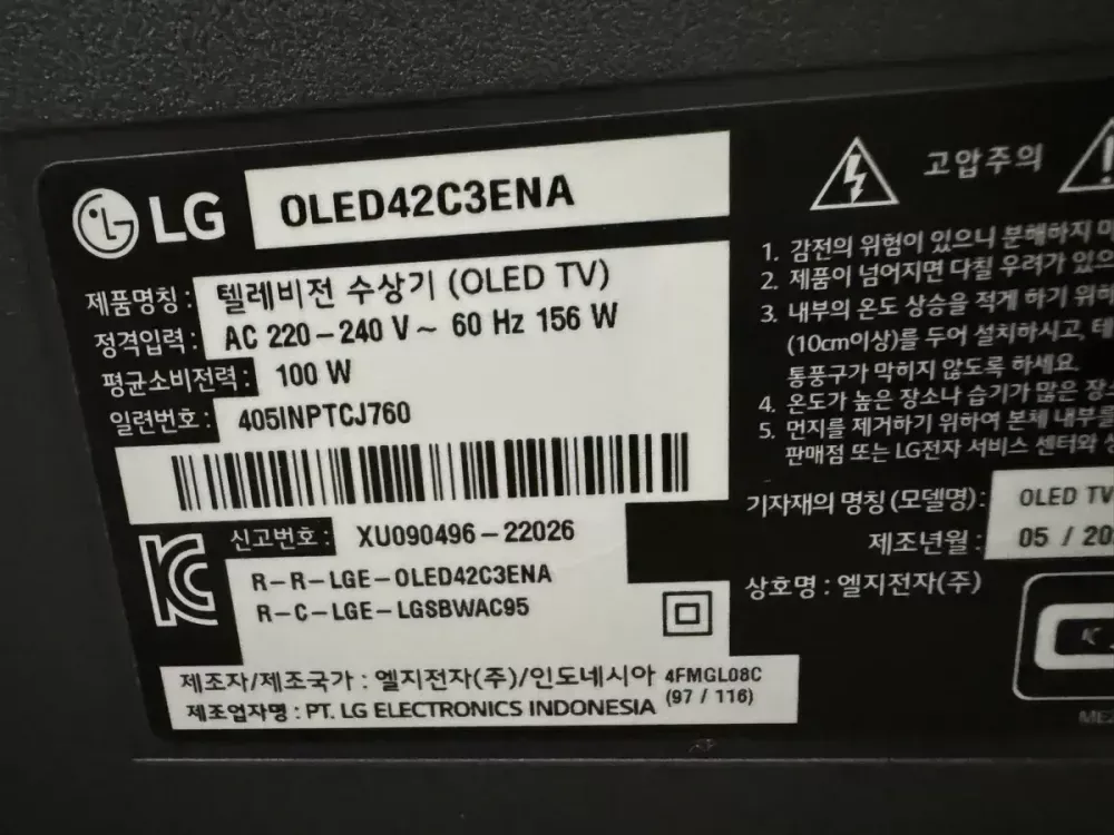 올해 6월에 구입한 따끈따끈한 티비 입니다 주말에 게임 하려고 샀는데 시간 없어서 처분 합니다. 연락 주세요 모델명: OLED42C3ENA