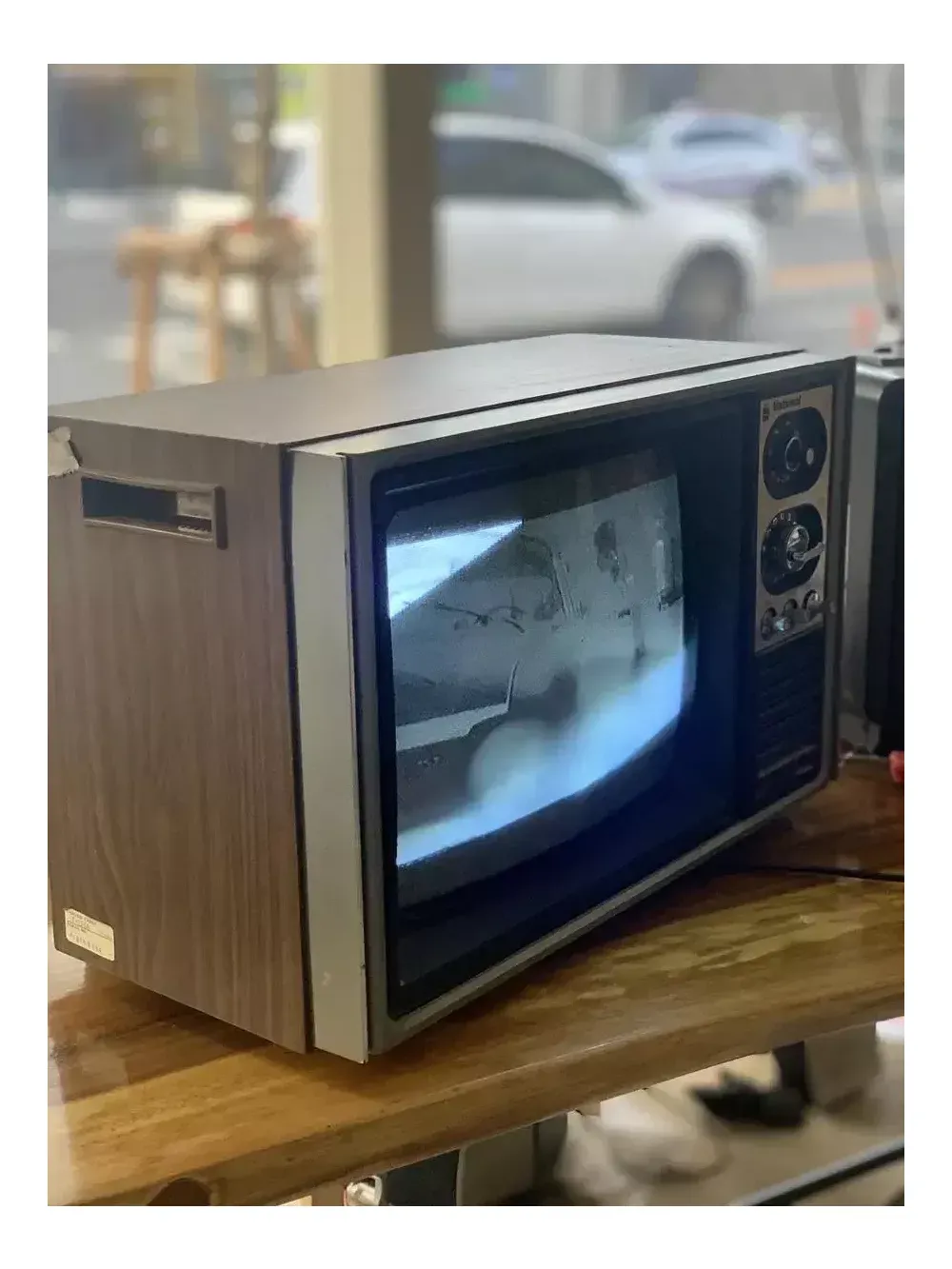 레트로 티비 감성 흑백 트랜지스터 티비 생산년도 1979년 추정 민트급 레트로 디자인 한국 나쇼날 전기회사에서 제작한 흑백티비로 1979년에 동인천 세무소에서 부착한 특별 소비세 증지가 붙어 있으며 시리얼넘버까지 생생히 붙어 있고 전면부 상태는 완벽합니다 사이즈 가로 48cm *세로 30cm * 두께30cm 근대사 수집하시는 분들께는 소중한 자료로 카페나 샵 을 운영하시는 분들은 동영상에 연결하시어 감성소품으로 활용하실수 있습니다 빈티지 특성상 교환및 환불이 불가하오니 아래에 첨부한 인스타 계정을 보시고 구매 문의 부탁 드립니다 인스타링크 https://www.instagram.com/p/CtjJOEyvW1w/?igshid=MzRlODBiNWFlZA== 모델명 National tv tr40iu 내셔널 트랜지스터 티비