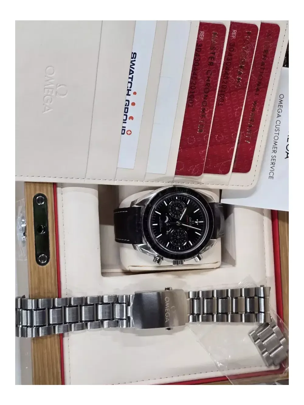 22년5월 국내백화점 스템핑 박스풀셋입니다 리테일가1670 브레이슬릿본품+100만원상당 악어가죽스트랩디버클 포함입니다 보증기간 27년5월로 아직 3년가까이 남아있습니다 풀코에 박스풀셋이며 브레이슬릿은 거의새거라고보시면됩니다 브레이슬릿도 줄조정기능이 신씨마랑동일합니다 오메가의 기함급 모델답게 세라믹베젤.리퀴드메탈 나사에서직접촬영한달모양까지 기능도많고 신경도 많이쓴 오메가의 기함모델입니다 서울 직거래 가능합니다 교환은+추가금받는쪽으로만가능합니다 드리는건불가능합니다 판매가격 일괄 870입니다 네고는 불가합니다