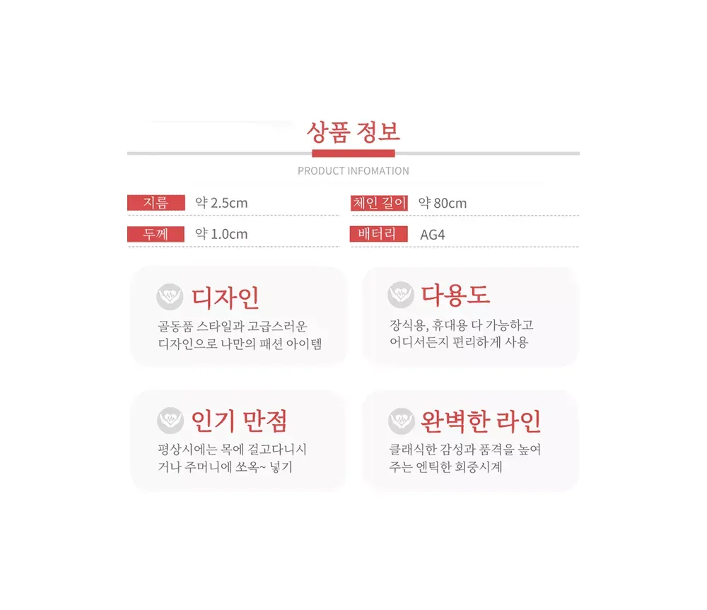 NEW 동색 체인 목걸이 회중 시계 골동품 빈티지 레트로 석영 펜던트 Vintage Smooth Cover Unisex Analog Quartz Pocket Watches Pendant Chain Gift 100% 새롭고 고품질. 운동: 석영 직경: 약 4.5cm 두께: 약 1.5cm 체인의 총 길이: 약 30cm 패키지 내용: 1 x 회중 시계 1 x 체인 *회중시계 구매 시, 목걸이줄 함께 드립니다 *허리줄 체인은 별도 구매입니다 100% Brand New and High Quality. Movement: Quartz Diameter: About 4.5cm Thickness: About 1.5cm Total Length of Chain: About 30cm Package Content: 1 x Pocket Watch 1 x Chain