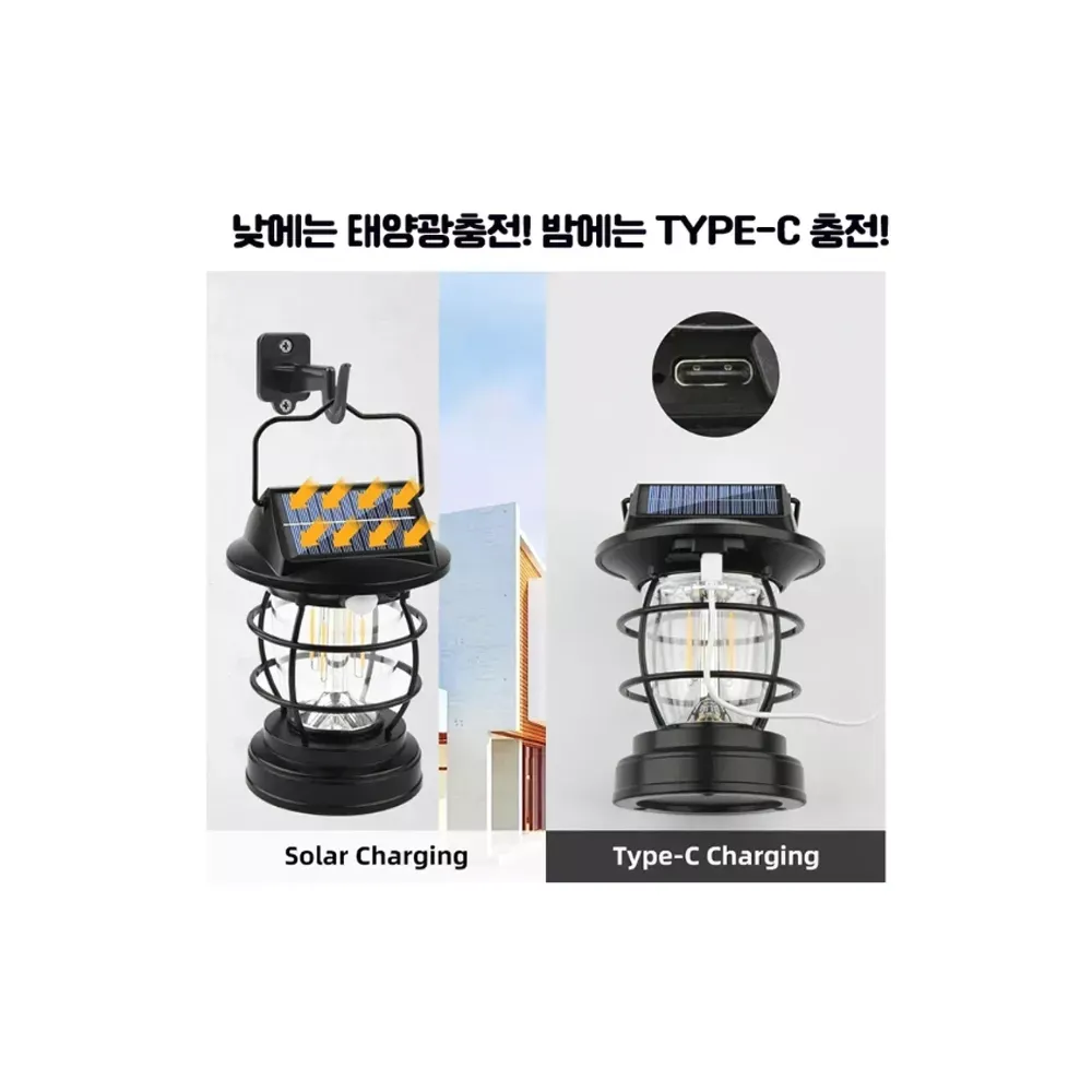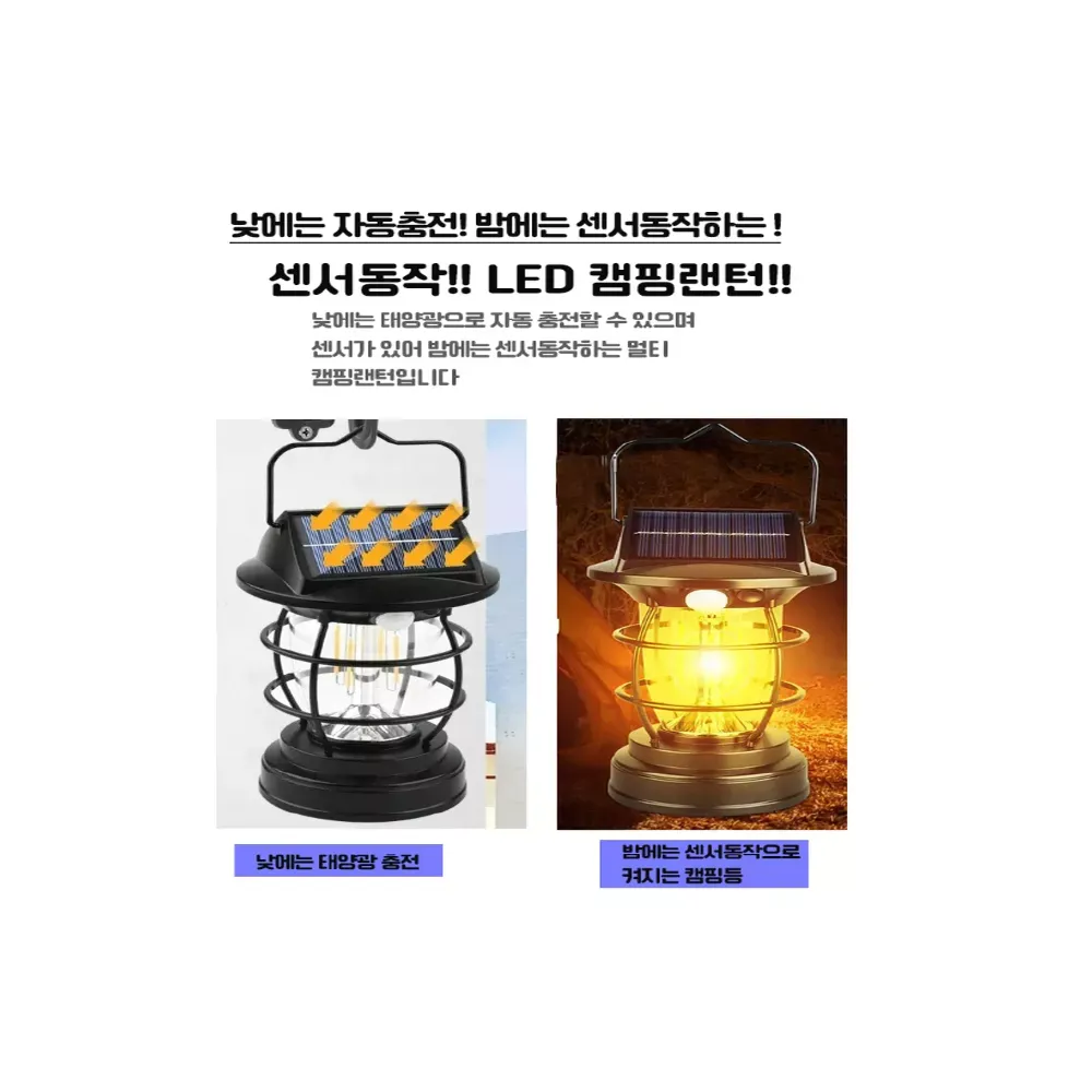 • 감성캠핑 동작 감지 태양광 충전 C타입 LED 멀티 랜턴