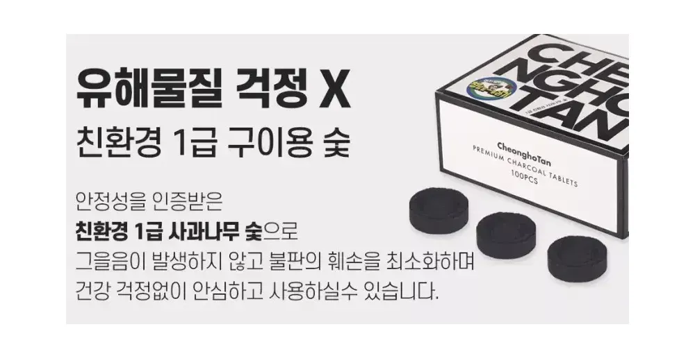 친환경 1급 사과나무 캠핑 바베큐 홍탄숯 1box 100개입 요약정보 및 구매