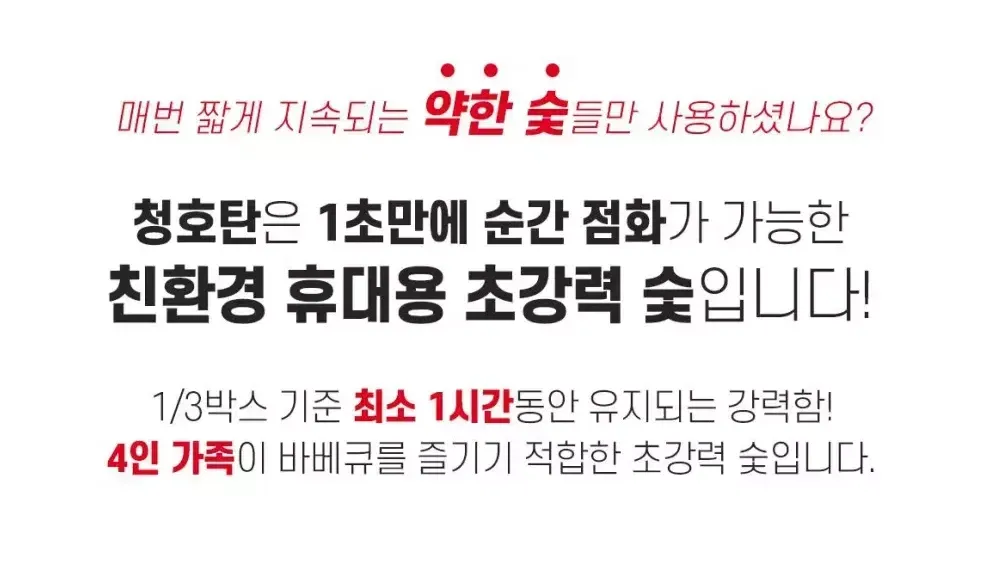 • 친환경 1급 사과나무 캠핑 바베큐 홍탄숯 1box 100개입
