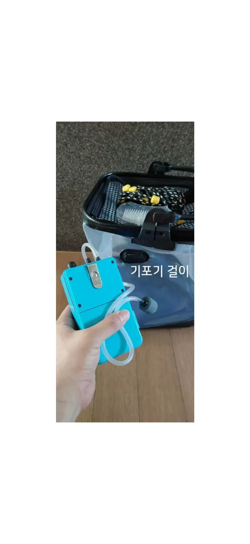 <투명대형두레박+기포기+D건전지2알+실리콘 고기집게> ★기포기 걸수 있는 걸이가 있는 대형 투명두레박(가로23cm,세로23cm,높이26cm)입니다 두레박사이즈(가로23cm,세로23cm,높이26cm) 줄 길이 6m(최장), 줄 60cm마다 손으로 당기기 편하게 고무구슬 박아 놨구요, 두레박 청소할수 있게 솔도 달려 있습니다 EVA(에바) 소재라 파손이나 깨질 염려가 없어 접어서 보관할 수 있기에 엄청 편합니다, 캠핑,낚시 필수용품입니다 투명 두레박이라 고기 헤엄치는거 다 보여서 특히, 애들이 엄청 좋아합니다 (일반두레박은 크기가 작아서 고기가 헤엄치지 못하고 기포기 걸이가 없음) 기포기 상태는 아주 좋습니다, 제가 계속 사용하고 있는데 고기가 밖으로 튀어나올 정도로 쌩쌩 돌아갑니다, 이틀 밤새도록 돌려도 작동하니 건전지 걱정은 안하셔도 됩니다(건전지 1알 넣어도 돌아가는 직렬방식입니다) ★두레박, 직접 주문 제작한 것이라 시중에 없는 겁니다 ★고기집게는, 두레박 옆에 놔두고 고기잡을때, 써보시면 손에 냄새도 안나고 장갑 안껴도 되고 진짜 엄청 편합니다